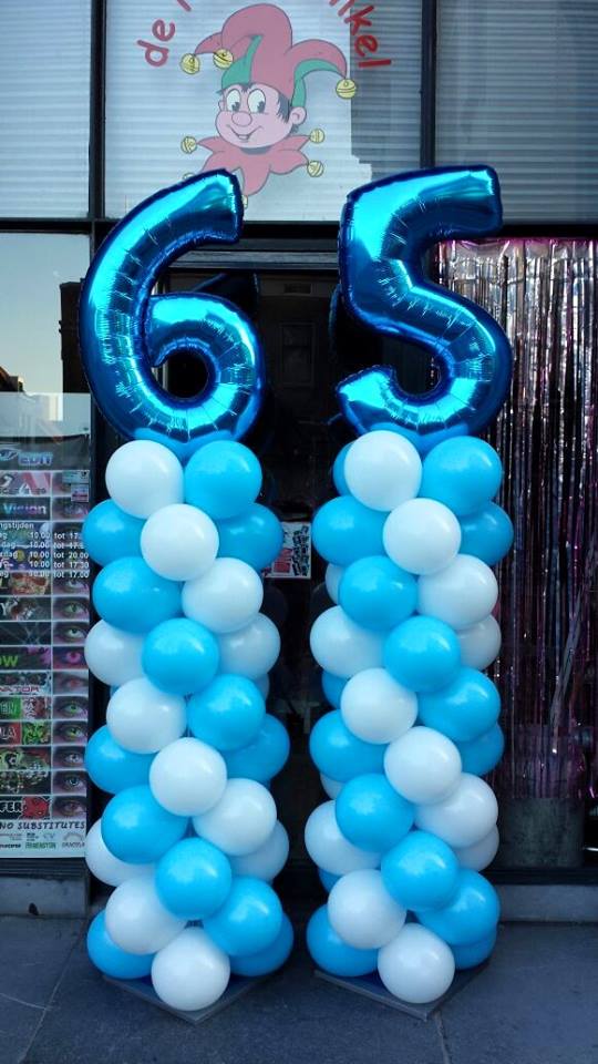 Ballonpilaar wit blauw cijfer ca 2.5 meter